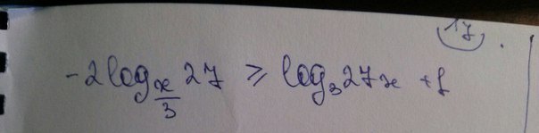 Преобразуем неравенство: -2logx/3 3³≥ log₃x + log₃27 +1