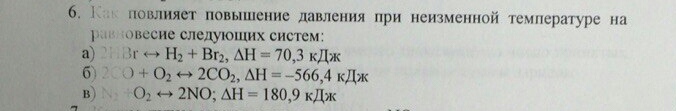 б) сместиться влево. При повышении давления равновесие смещается в сторону меньшего объема газообразных веществ (смотрим на коэффициенты: слева 3, справа 2)