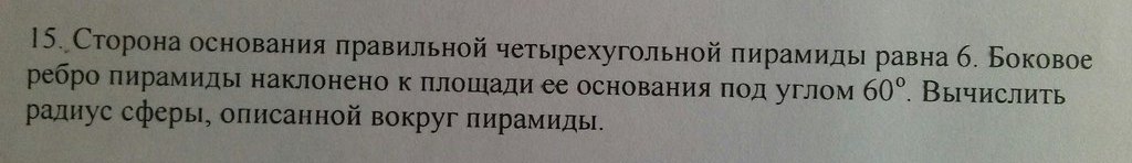 ответ: радиус сферы описанной около пирамиды R=2√3