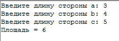 Создать программу вычисления площади треугольника по известным значениям длин его сторон: a,b,c.
