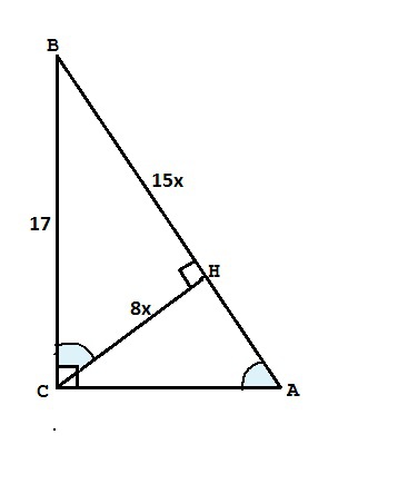 В треугольник ВНС гипотенуза ВС=17, отношение его катетов 15:8 или 8:15 - налицо треугольник с отношением сторон 8:15:17 из троек Пифагора.