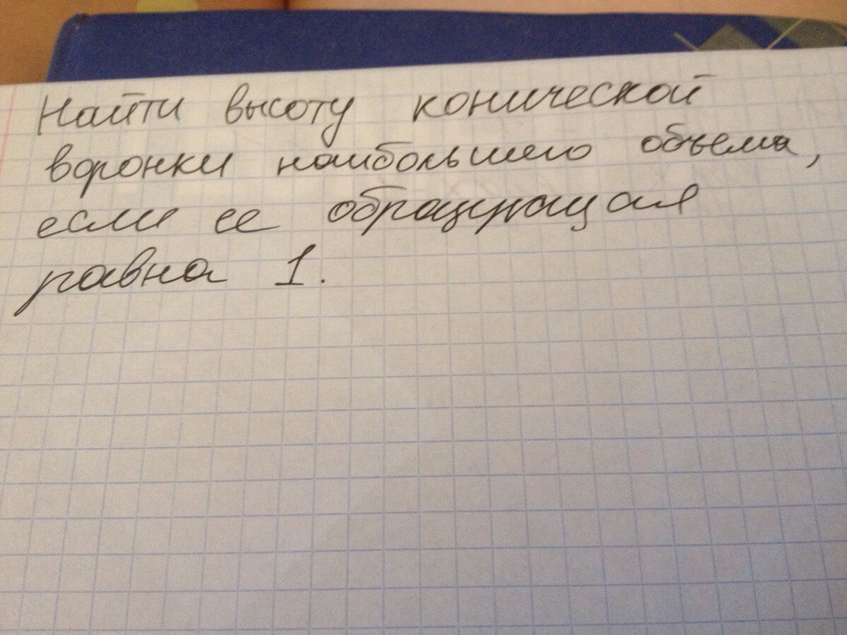 при Н=√(1/3) коническая воронка имеет наибольший объём