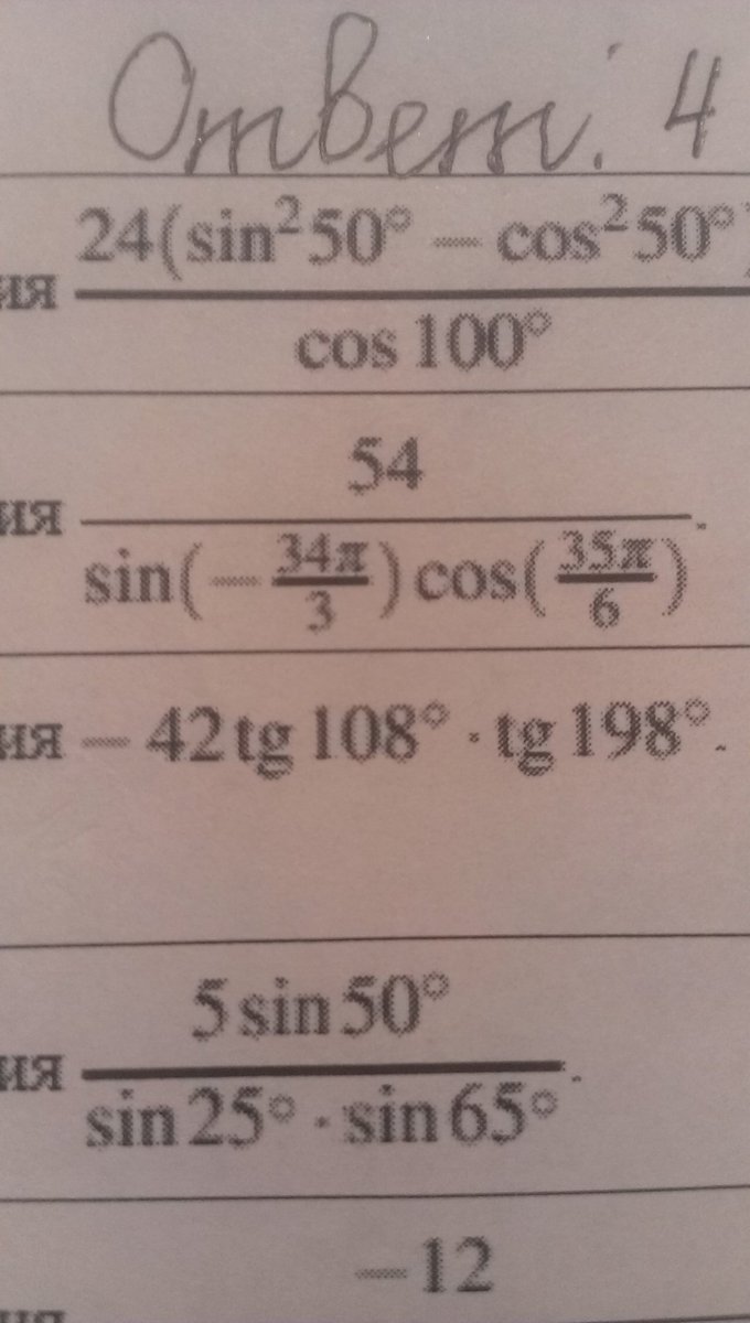Ответ:-24 tg 100 = -24 tg(90 + 10) = 24 Ctg 10