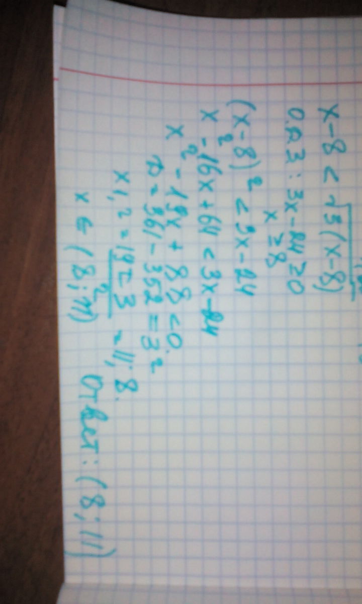 х-8<√(3*(х-8)) ОДЗ: х-8≥0 х≥8
