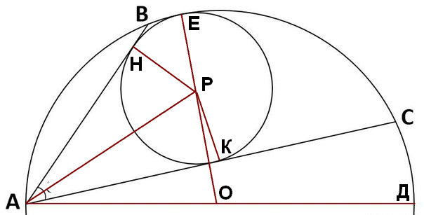 Окружность с центром Р касается АВ в точке Н, АС - в точке К и дуги ВС * в точке Е. Радиус этой окружности РН=РЕ=РК=R.