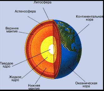 Ядро Земли можно разделить на внутреннее и внешнее.Внутренне ядро твёрдое, а внешнее жидкое.Температура ядра колеблется от 3000°С до 6000°С.Средний радиус ядра составляет порядка 3,5 тыс. км.