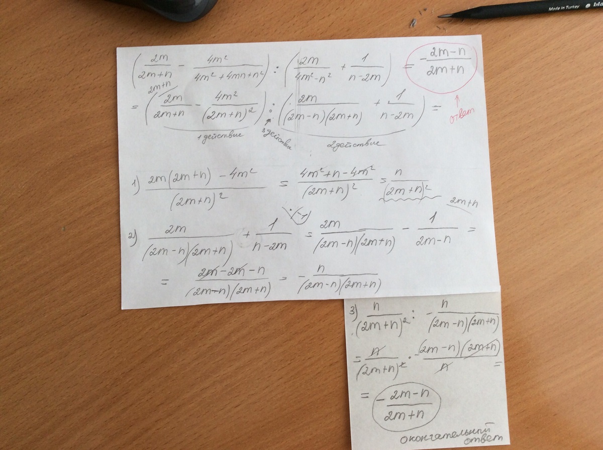 2) 2m/4m²-n² + 1/n-2m = 2m/(2m-n)(2m+n) + 1/(n-2m) = 2m-2m-n/(2m-n)(2m+n) = - n/(2m-n)(2m+n)