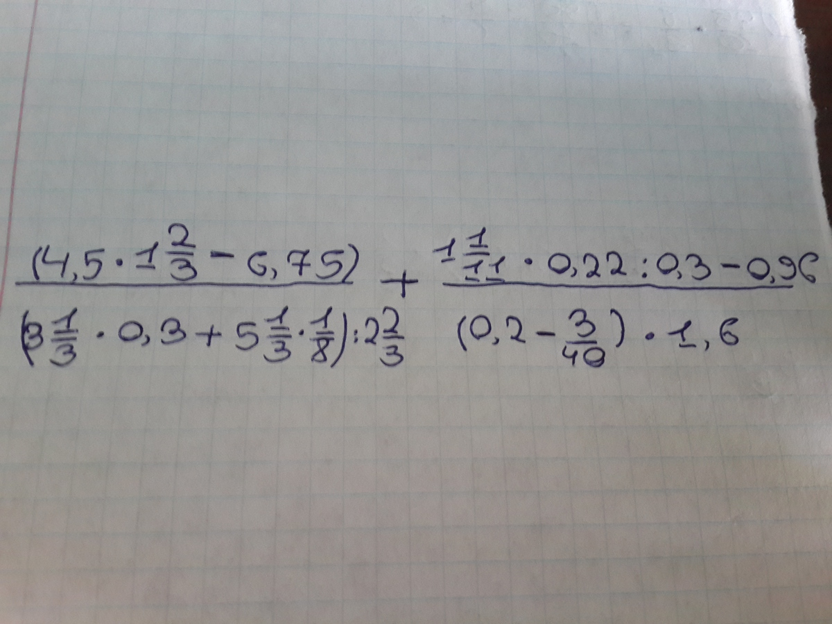 (4,5*1 2/3-6,75 / (3 1/3*0,3+5 1/3*1/8):2 2/3) + (1 1/11*0,22:0,3-0,96 / (0,2-3/40)*1,6)