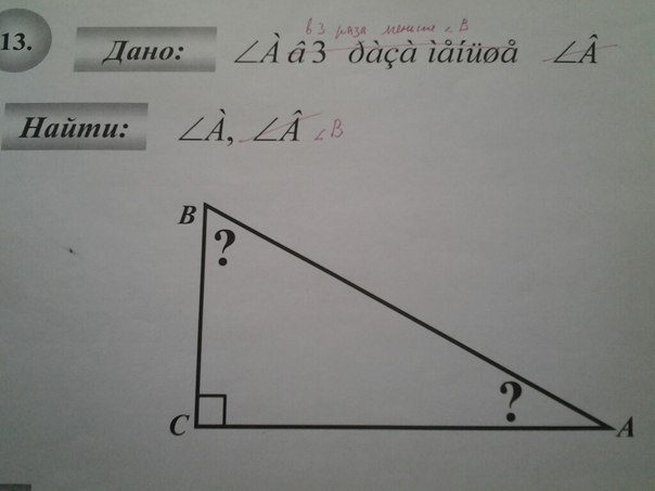 Если х (уг.А) = 22.5, то уг.В = 3х = 3*22.5 = 67.5 гр