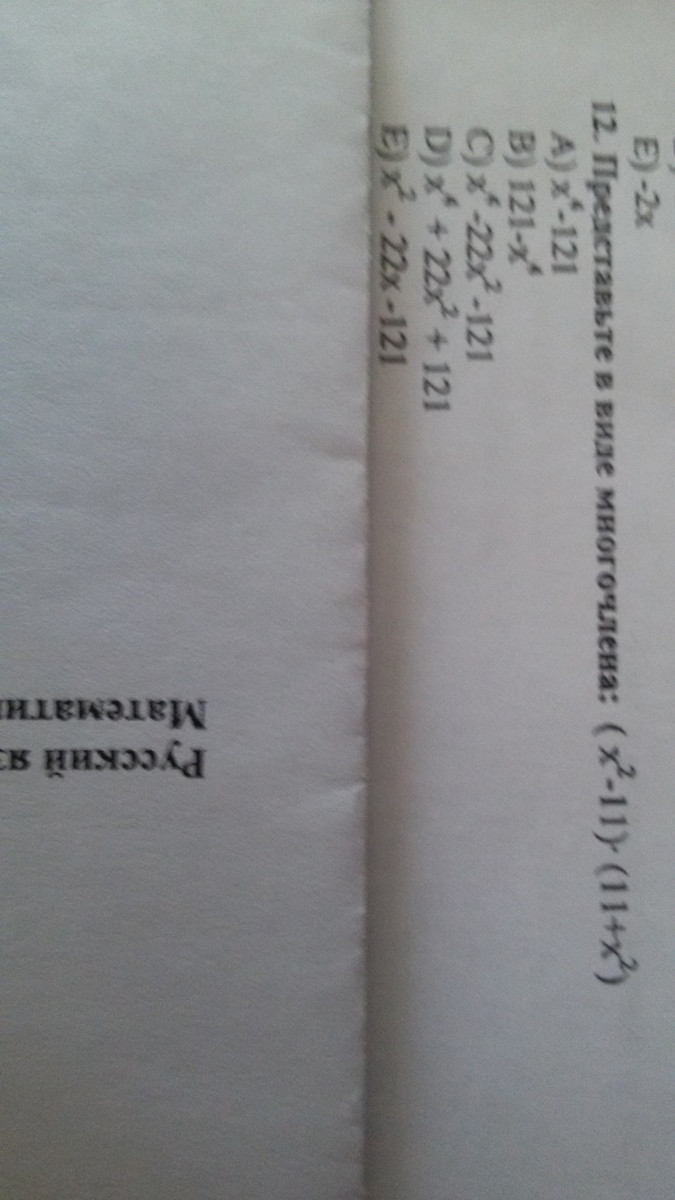 Ответ А. (X2-11)*(x2+11)=x4+x211-x211-121=x4-121. X2-это х в квадрате