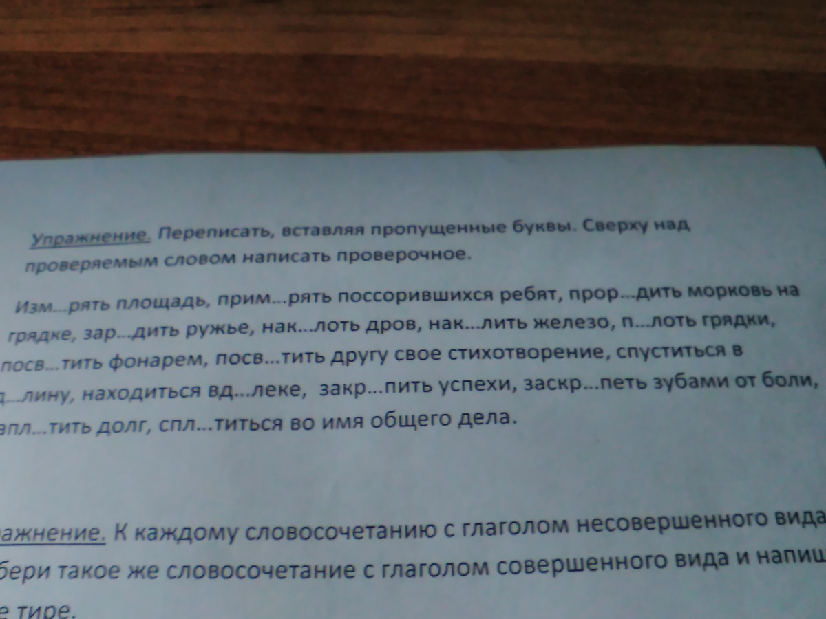 Измерять (мерка) площадь,примирять (мирить) поссорившихся ребят, прорядить (ряд) морковь на грядке,зарядить (зарядка) ружьё, наколоть (кол) дров, накалить (накал) железо, полоть (?) грядки,посветить (свет) фонарём, посвятить (свят) другу стихотворение,спуститься в долину (),находиться вдалеке (даль),закрепить (крепко) успехи, заскрипеть (скрип) зубами от боли,заплатить (плата) долг, сплотиться (?) во имя общего дела.
