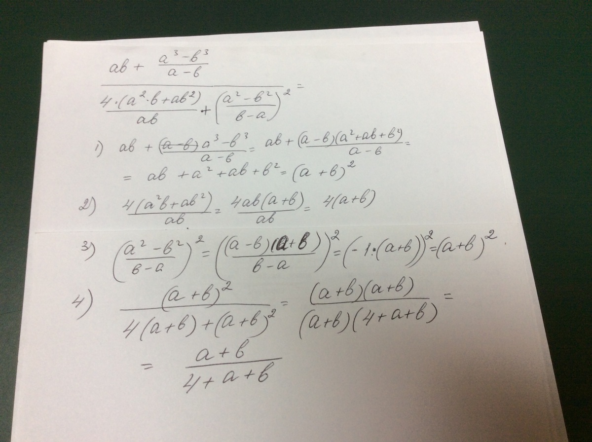 (ab + ((a^3-b^3)/(a-b)))/(4×((a^2×b+ab^2)/ab)+((a^2-b^2)/(b-a))^2