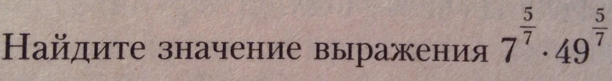7^{ frac{5}{7} }cdot 49 ^{ frac{5}{7} }=   (7cdot 49) ^{ frac{5}{7} }=   (7 ^{3}) ^{ frac{5}{7} }= 7 ^{ frac{15}{7} } = \  \ =7^{2 frac{1}{7} }= 7^{2}cdot 7^{frac{1}{7} }=  49 sqrt[7]{7}