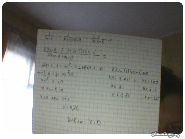 1/4x-1-2/(4x-1)(1+4x)+x-3/3(4x+1)=0 ОДЗ: x≠0.25