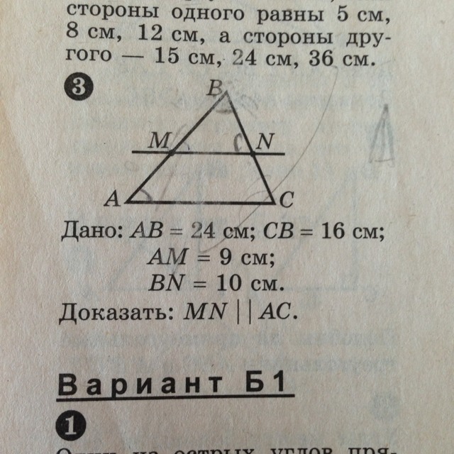 следовательно ABC ~ MBN => <BMN = <BAC => MN || AC (по смежным углам при секущей AB)
