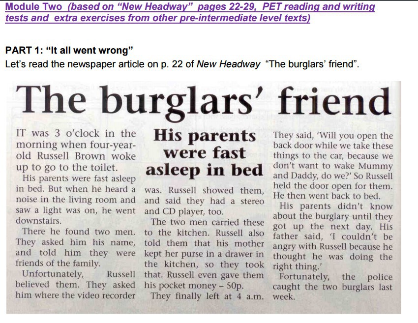 7. The police didn't catch the burglars the next day. They caught them a week ago.