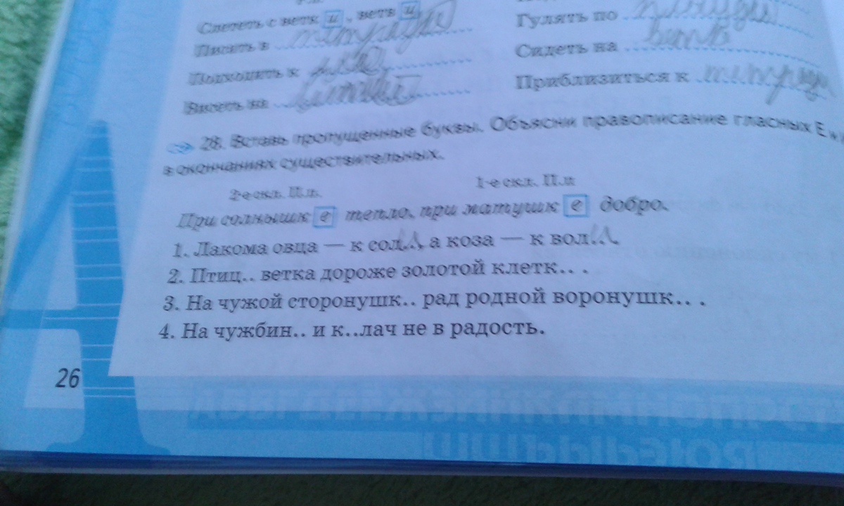 На чужой сторонушке (1 скл. п.п.) рад родной воронушке (1скл. д.п.)
