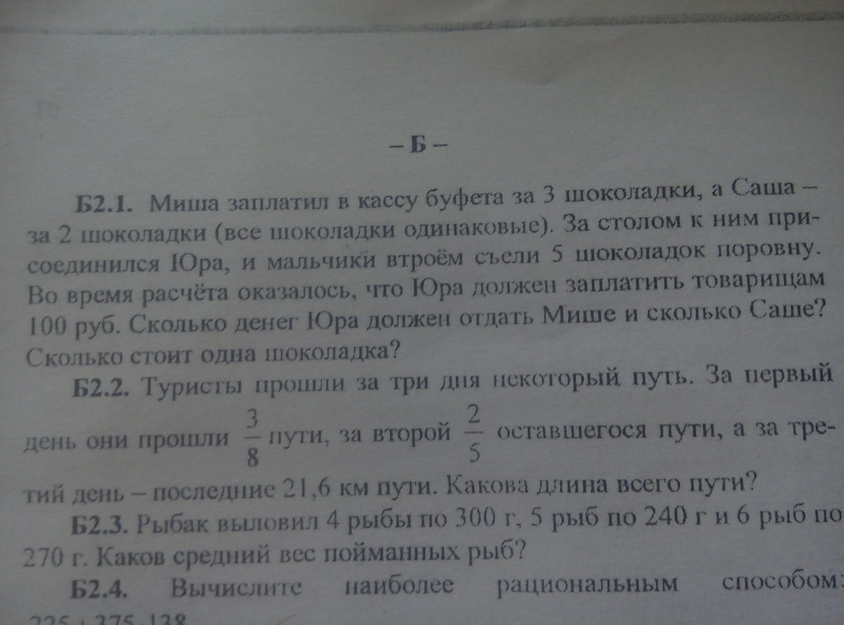 Ответ: 60 рублей стоит одна шоколадка. 80 рублей Юра должен отдать Мише и 20 рублей - Саше.