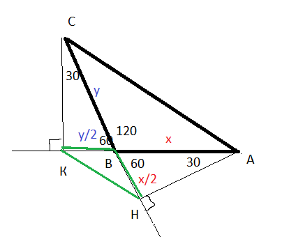 В треугольнике АВС угол В= 120, АН и СК - высоты. Найдите площадь треугольника НВК, если площадь треугольника ABC=4
