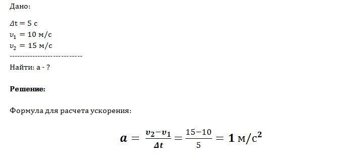 При равноускоренном движении в течение 5 с автомобиль увеличил скорость от 10 до 15м/c.Чему равен модуль ускорения автомобиля?