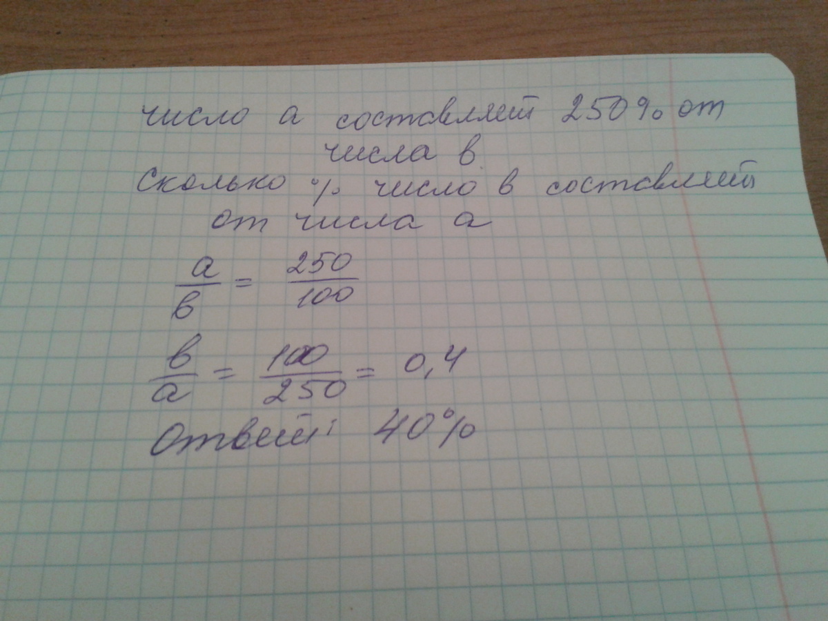 Число а составляет 250% от числа в, значит а=2,5в, отсюда