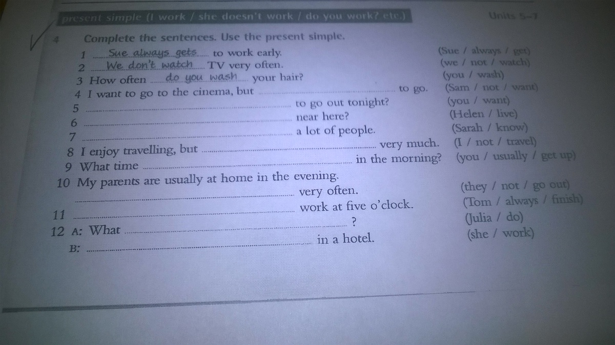 11. Tom always finish work at 5 o'clock.