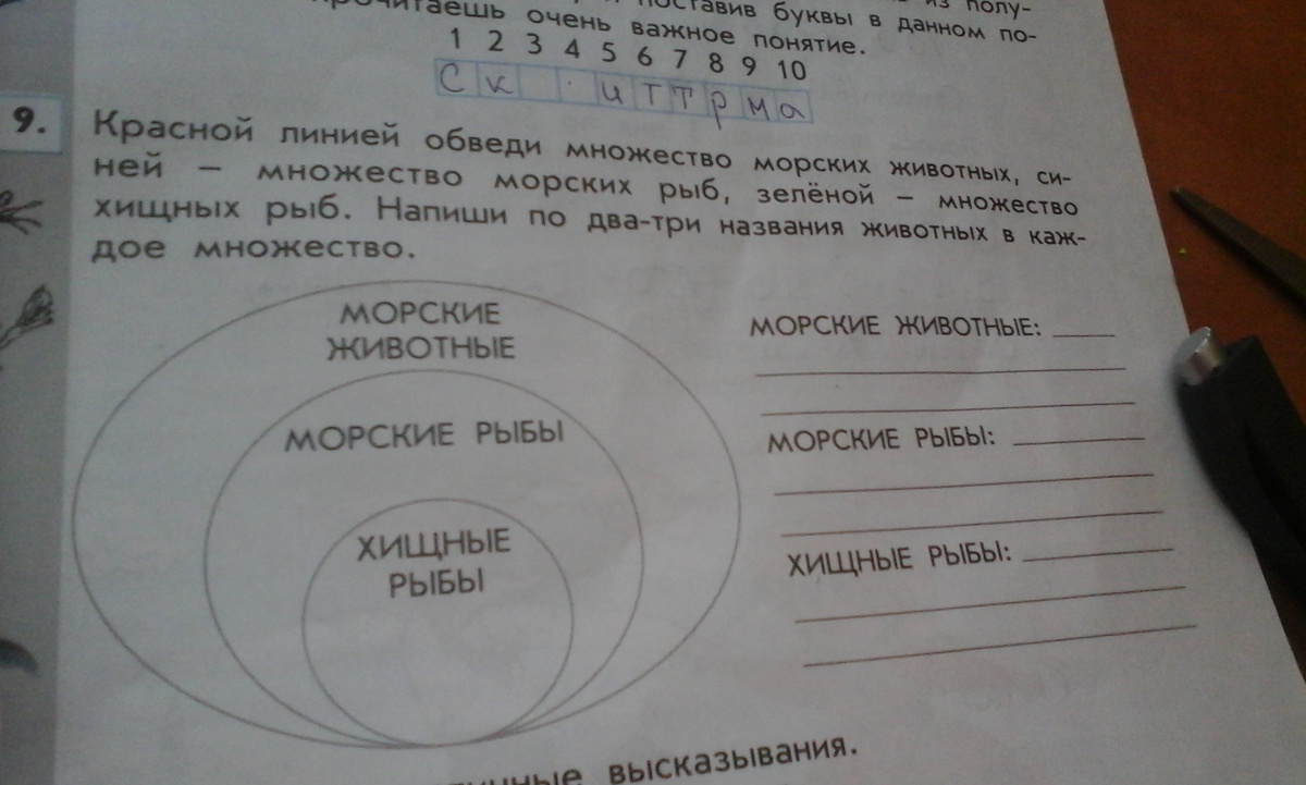 Тебе надо написать морских животных или что обвести? тогда Первый груг самый большой