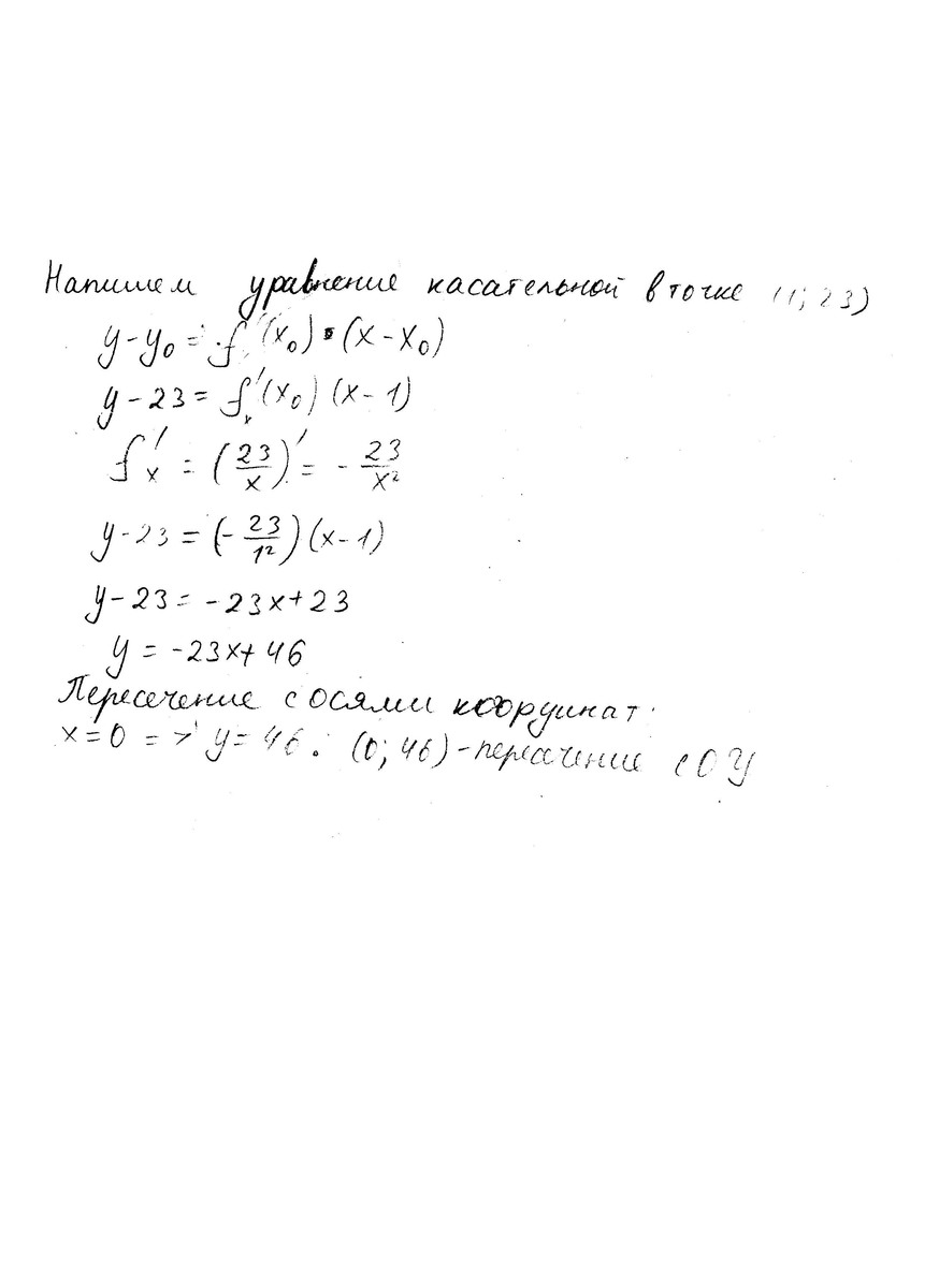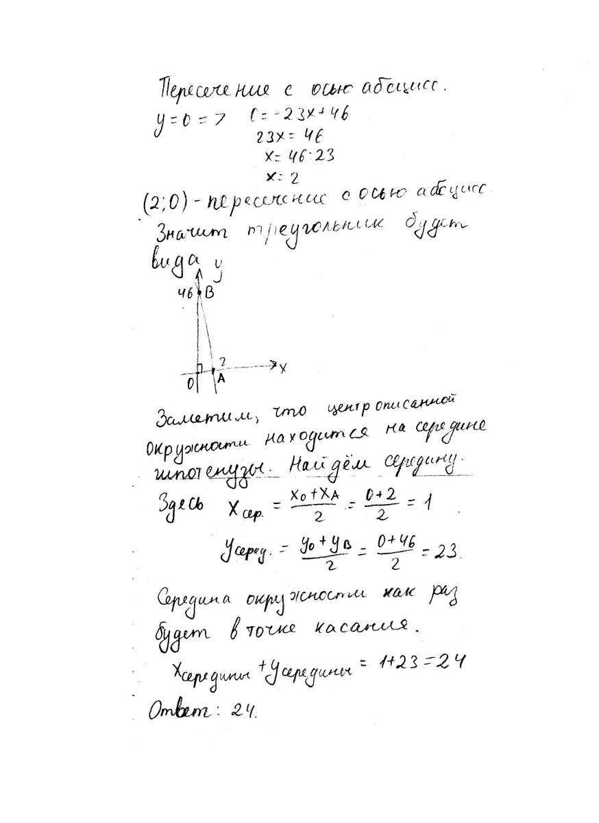Точка (x0;y0) центр окружности,описанной около треугольника,образованного осями координат и касательной к гиперболе xy=23 в точке М(1;23).Сумма x0+y0 равна: