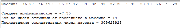 write ('Кол-во чисел отличных от последнего в массиве = ',p);