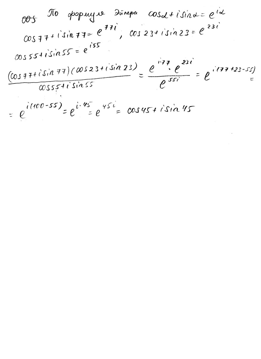 комплексные числа решите пожалуйста желательно распишите (cos77+i sin77)(cos23+i sin23)/cos55+i sin55