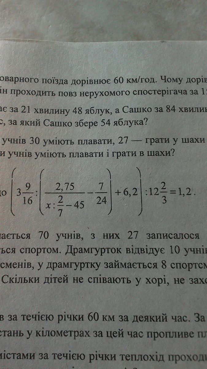 Чтобы найти неизвестное делимое ( в первых скобках) надо частное умножить на делитель