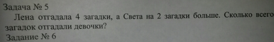 лена отгадала 4 загадки, а света - 4+2, то есть 6 загадок