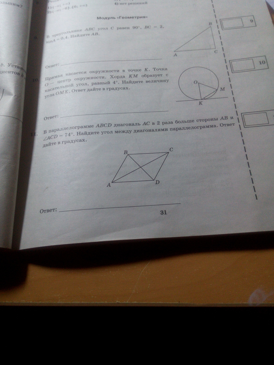 найдите угол между диагоналями параллелограмма.ответ дайте в градусах