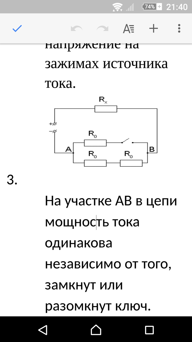 На участке АВ в цепи мощность тока одинакова независимо от того, замкнут или разомкнут ключ. Каково сопротивление Rx, если R0 = 40 Ом, а напряжение в цепи можно считать постоянным? ____________________________ Раз напряжение везде одинаково,сила тока тоже,тк соединение последовательно,то от ключа много че зависит.Rx зависит от положения ключа.При открытом-80 Ом,а при закрытом примерно 27.Чуваки,помогите пожалуйста,это просто ад!