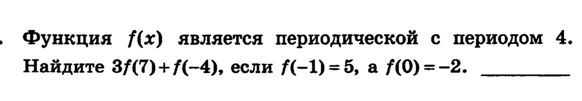 f(7)=f(7-4)=f(3)=f(3-4)=f(-1)=5\f(-4)=f(0-4)=f(0)=-2\3f(7)+f(-4)=3cdot5+(-2)=15-2=13