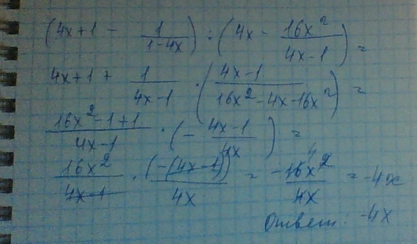 Ух ты! Значит я правильно решил! меня точно так написано. Просто я не знаю как сократить -16X^2/4x