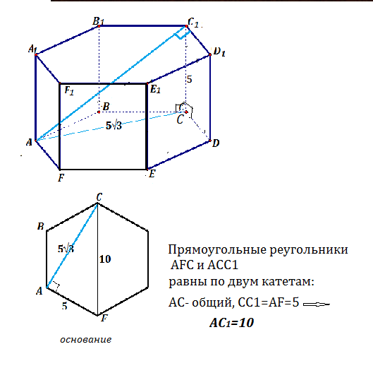 АС=СF*sin 60°=5√3, затем по т.Пифагора длину АС₁, но вряд ли есть в этом необходимость.