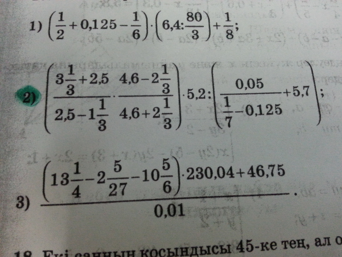 1) (1/2 + 1/8 - 1/6)*(32/5 * 3/80) + 1/8 =