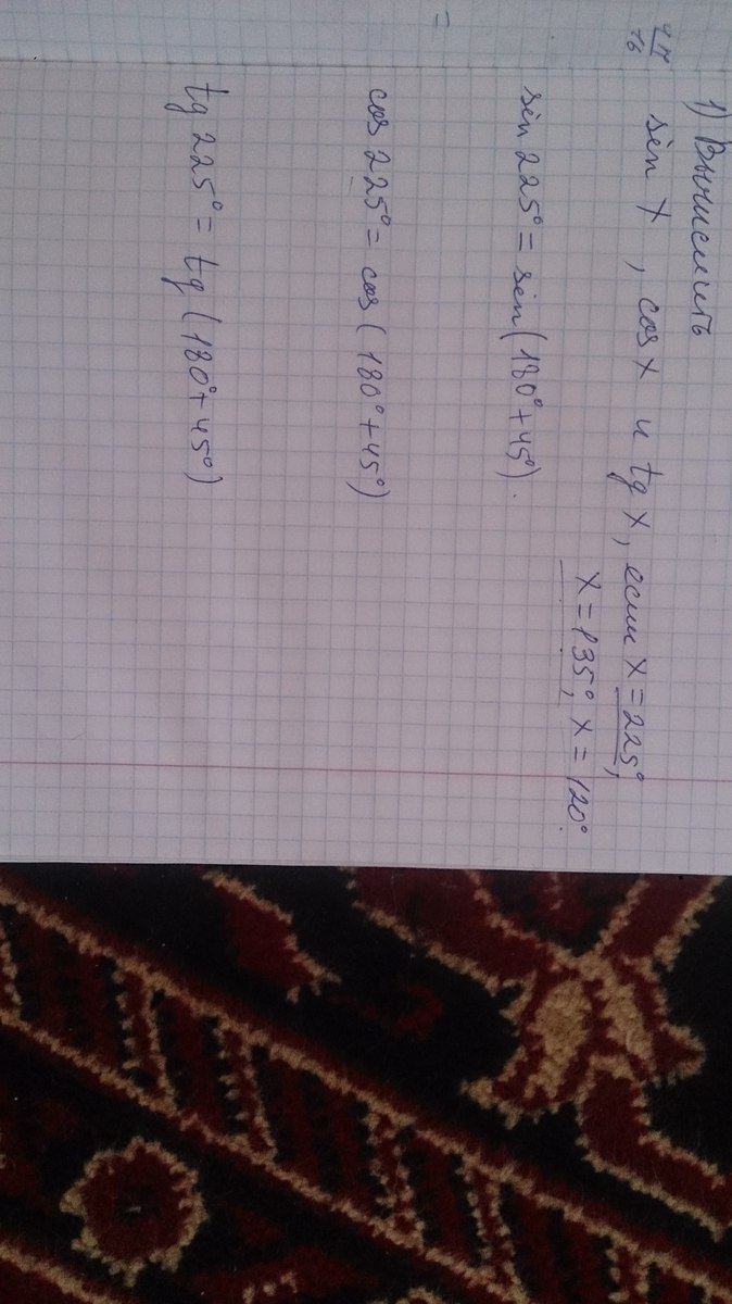 tg225°=tg(180°+45°)=tg45°=1