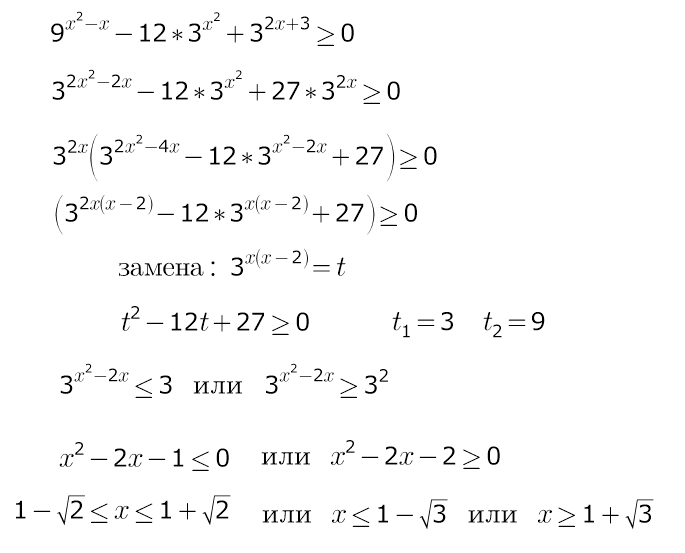 и оно сведется к квадратному относительно 3^(x^2-2x)