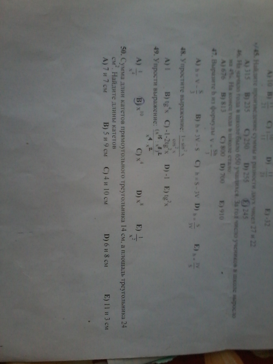 х один катет