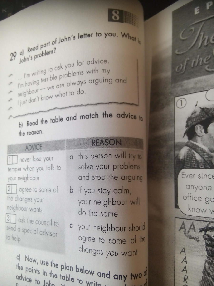 a)His problem is that he can`t speak to his neighbour, because he and John are always arguing