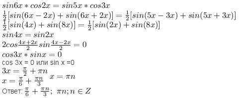 Помогите, пожалуйста, решить тригонометрические уравнения. 1)sin6x*cos2x=sin5x*cos3x