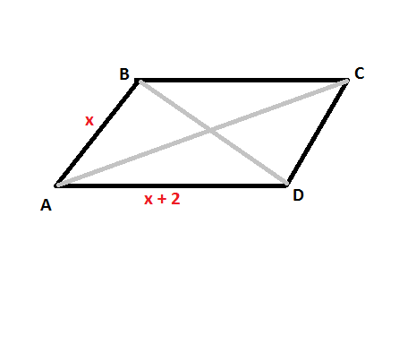 Дано: ABCD - параллелограмм, AD > AB на 2, AC = 14, BD = 8