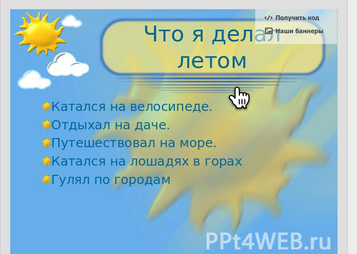 Пожалуйста ребята скиньте презентацию"Как я провел лето."Дам 21 балл! Срочно!!! Заранее, большое большое при большое спасибо!!!