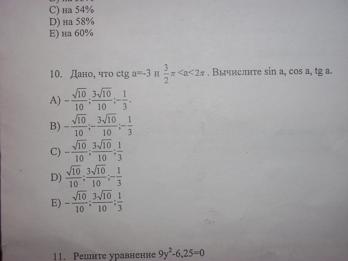 tg α = 1/ctg α = 1/ -3 = -1/3