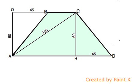 ABCD - равнобедренная трапеция. Диагональ AC = 100 мм, высота АО = 60 мм, ОВ = 45 мм. Найдите площадь трапеции. Помогите решить, пожалуйста)