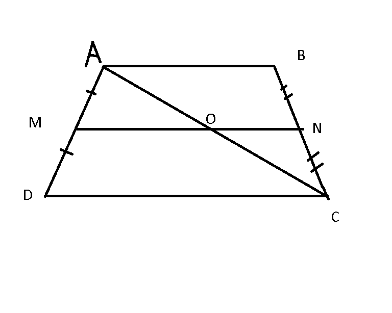 Где его основания являющиеся средней линией у одного треугольника CON, CAB