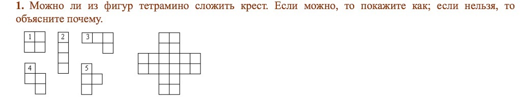 Нельзя. Как мы видим, максимальное число в ряд может быть 6 маленьких кубиков. Этот ряд можно составить, соединив, например, 2 и 1. Но тогда себе место не найдет 3, ведь куда ее не поставишь, она будет лишняя. 6 кубиков в ряд можно получить, соединив 2 и 4; 3 и 4; 3 и 1; 1, 4 и 5, и в каждом случае будет повторяться не так конструкция, которая нужна. Вывод: нельзя из этих фигур сложить крест.