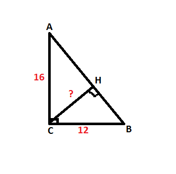 Катеты прямоугольного треугольника равны 12 и 16. Найдите высоту, проведенную из вершины прямого угла.